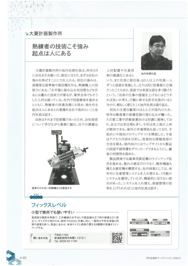 池内社長が月刊生産財マーケティングより取材をいただきました。